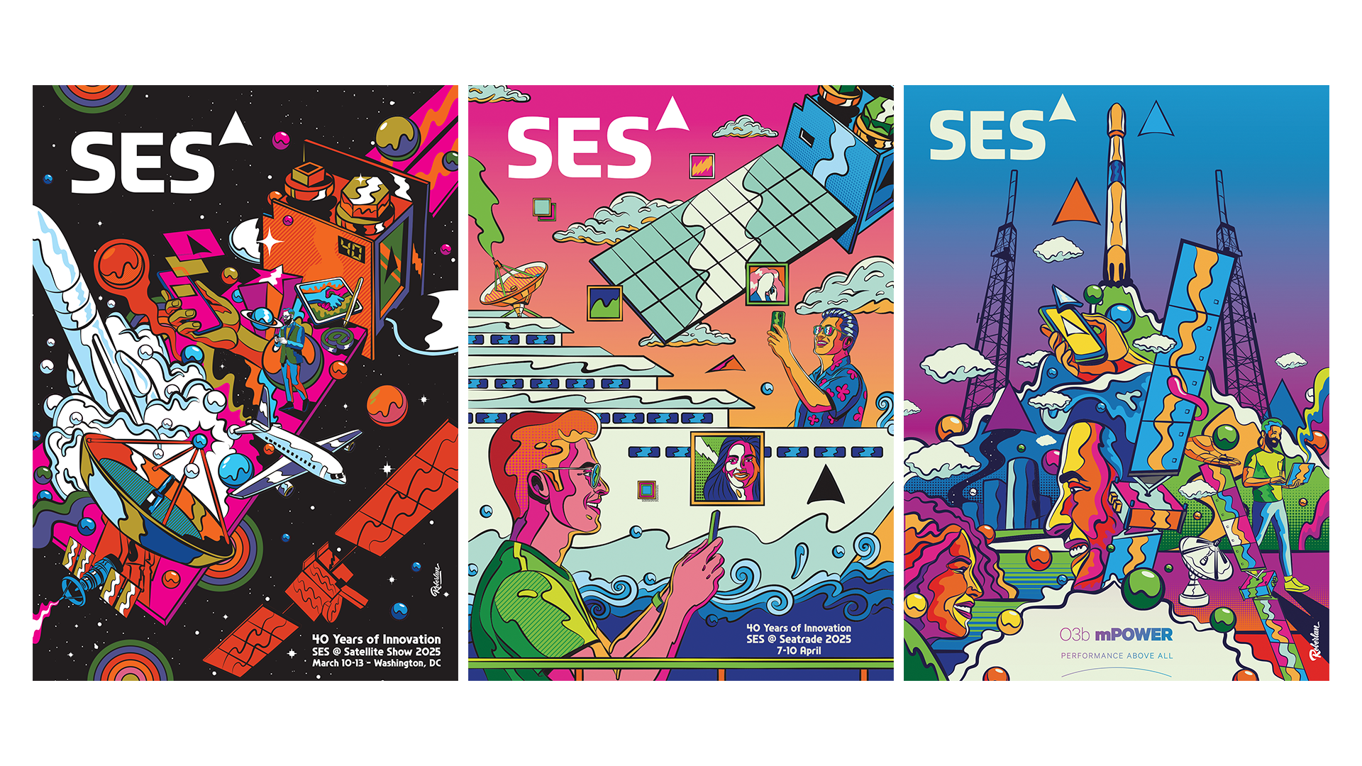 Colorful and vibrant posters i created for SES Satellites for different events.